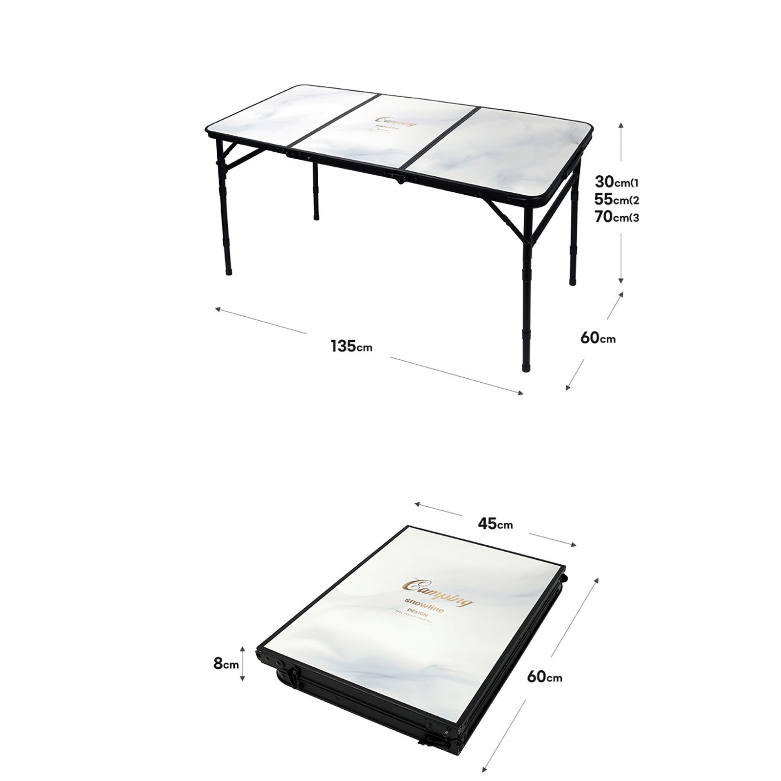 Chất liệu cao cấp: Mặt bàn được làm từ gỗ MDF nhẹ nhưng rất chắc chắn và có khả năng chống thấm nước. Cùng với đó là khung nhôm có độ đàn hồi cao và trọng lượng nhẹ.